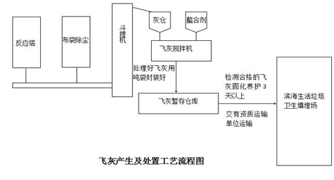 飛灰經(jīng)公用輸灰系統(tǒng)進(jìn)入灰倉(cāng)貯存,灰倉(cāng)頂部設(shè)置倉(cāng)頂除塵器,防止飛灰外溢,揚(yáng)塵過(guò)大;覀}(cāng)中的灰經(jīng)過(guò)螺旋輸送機(jī)定量進(jìn)入飛灰螯合攪拌機(jī),按照一定的添加比列,向攪拌機(jī)中添加螯合劑溶液,飛灰與螯合劑在攪拌機(jī)中充分?jǐn)嚢璺磻?yīng)混合,攪拌好的飛灰通過(guò)噸袋包裝好后運(yùn)至廠區(qū)飛灰暫存場(chǎng)所,在飛灰暫存場(chǎng)所內(nèi)養(yǎng)護(hù)至少3天以上,以達(dá)到一定的抗壓強(qiáng)度,便于運(yùn)輸。